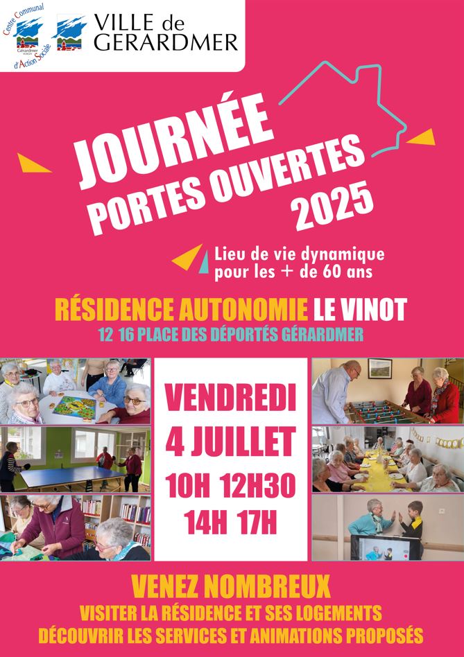 La Ville vous invite à découvrir la Résidence Autonomie Le Vinot à l’occasion de sa journée portes ouvertes, le vendredi 4 juillet 2025, de 10h à 12h30 et de 14h à 17h.